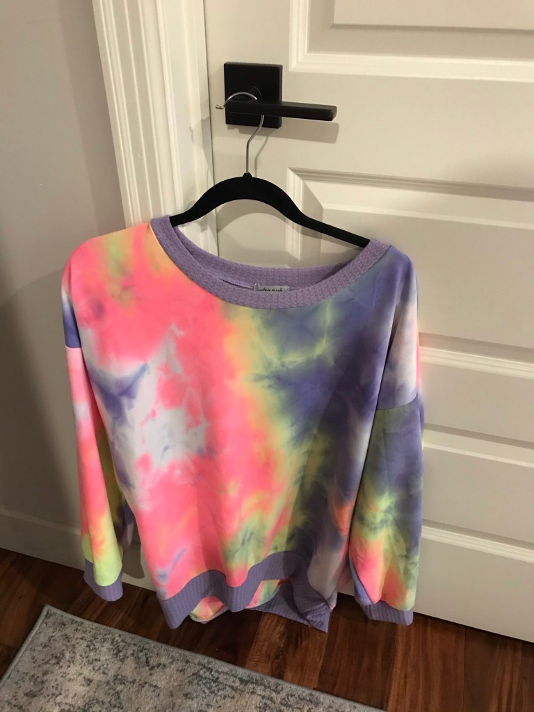 I teach elementary art, so my wardrobe is super casual. I need to be able to move freely. Since I’m on the move all day long, I get hot and wear layers that I can shed. I have a lot of open front sweaters and thin casual jackets for this reason. I don’t spend much money on single items of clothing because I will inevitably spill paint, but I do have a lot of clothes. I like to have choices for the colorful mixing and matching.