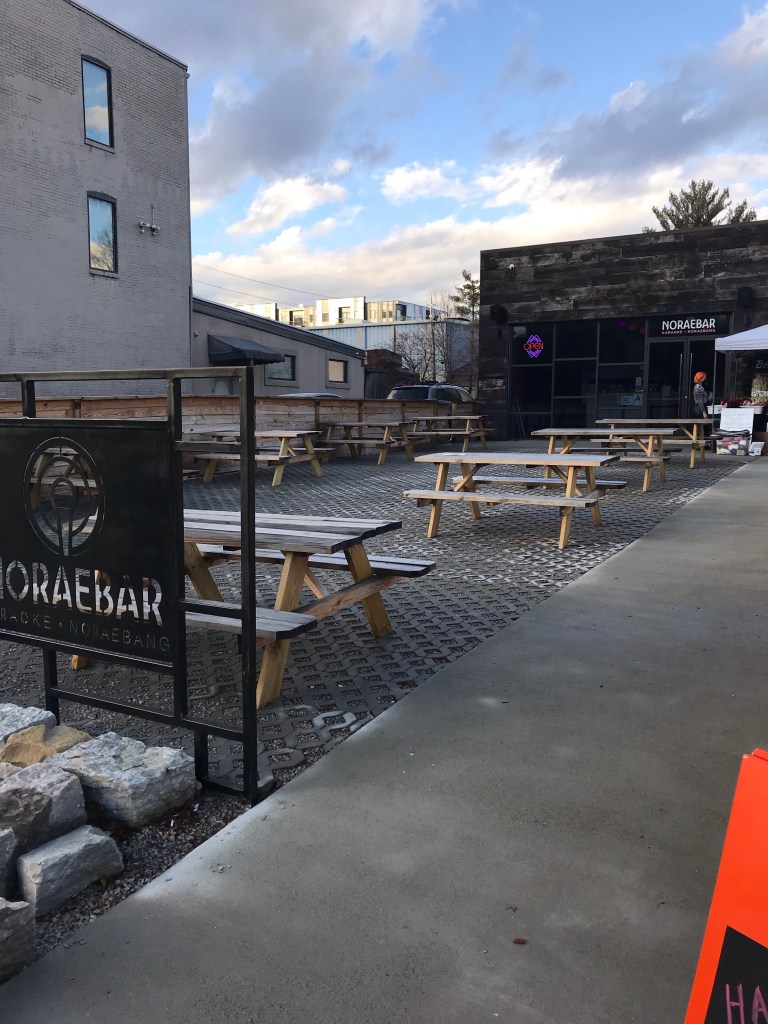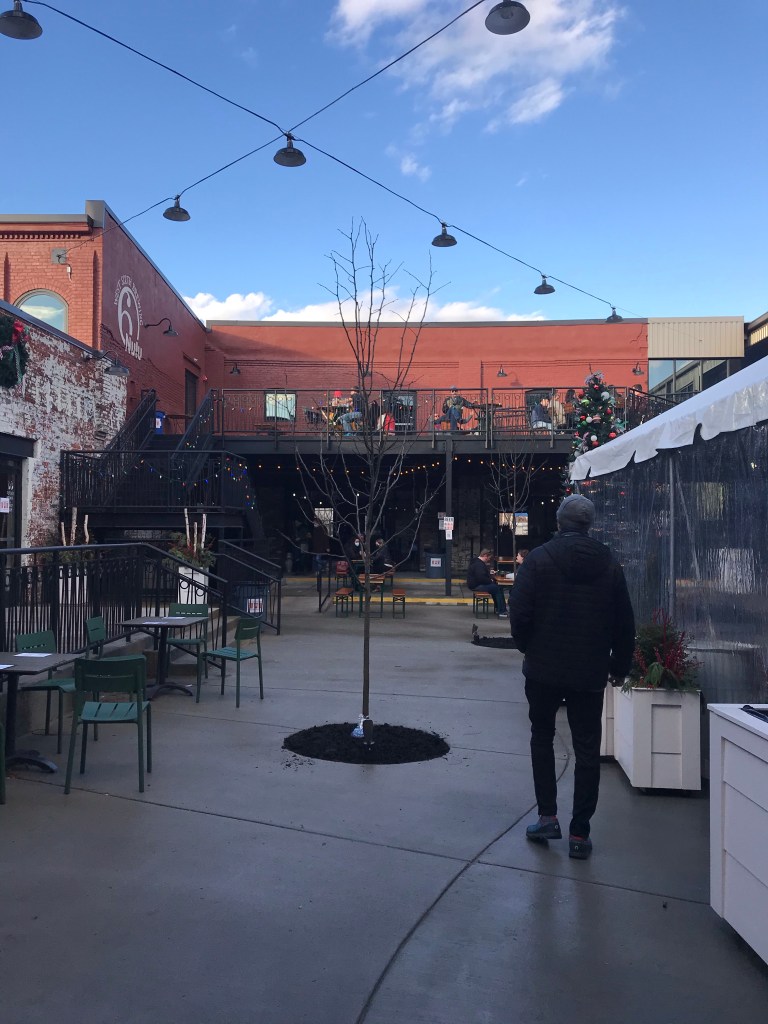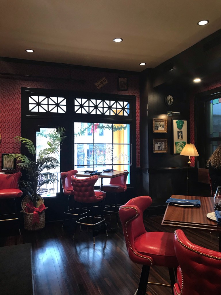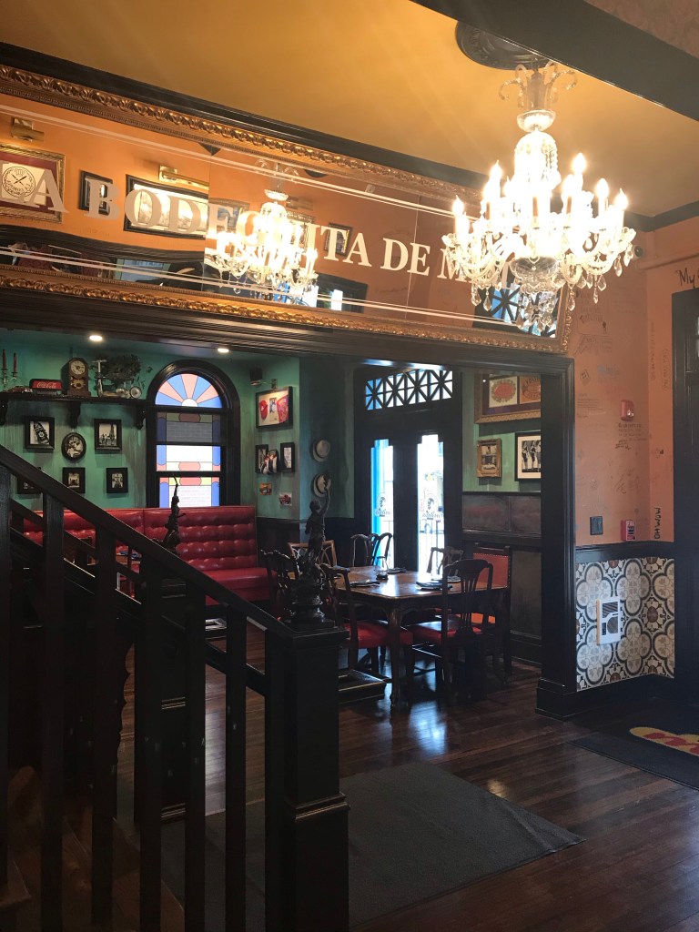 And, here is Beth when we ate at a speakeasy. We took pictures of each other on this stage.