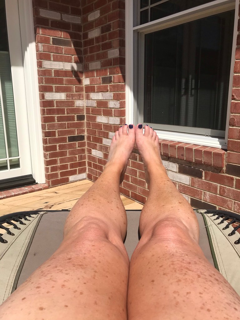 He stained the deck. We bought reclaimed wood for this project and the stain really brings out the beauty of the wood, in my opinion. We need to do another coat and then seal it, I believe. There will also be railings that will make it look smaller. I am anxious to furnish the deck but I don’t know exactly where to look or even what I want. I think we want two chairs and a table. I am wondering if Adirondack chairs with pillows would look good? I want to save room for some potted plants and it’s not a huge space. I have been looking on Wayfair but I am a little nervous about ordering without seeing it in person. We did have great luck with our covered patio sectional, though. Any suggestions for where to look?