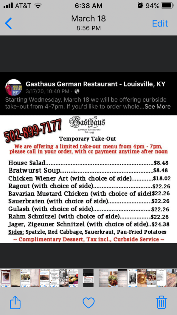 My husband is still going to work like normal but his building is very empty. Most people are still continuing to work from home. I am a little bit worried about him going, but he only interacts with a few people and he isn’t going out for lunch anymore because he can’t – only carry out now. He has been coming home for lunch and that has been nice.