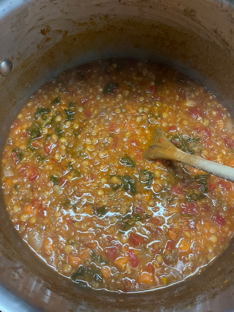 I really should have stocked up on my soups. I also have envy when I see everyones’ chili photos. I should have gotten stuff to make chili, too. I still had this lentil soup so I thought I was good.