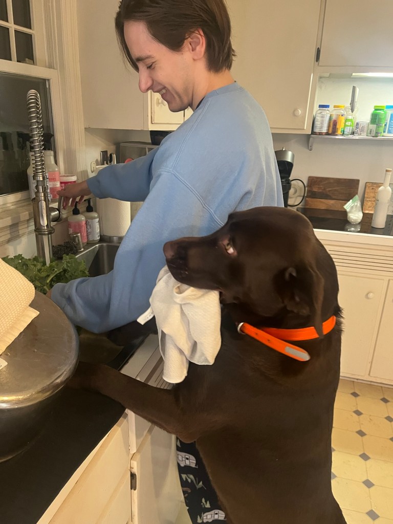 It’s not my favorite. I don’t love all the work involved in getting coats, hats, mittens and all the accessories on to go outside. I love one good snow and walking my dog in it and seeing how much he enjoys it. Our chocolate labs have loved snow and Eddie Otis is no exception!