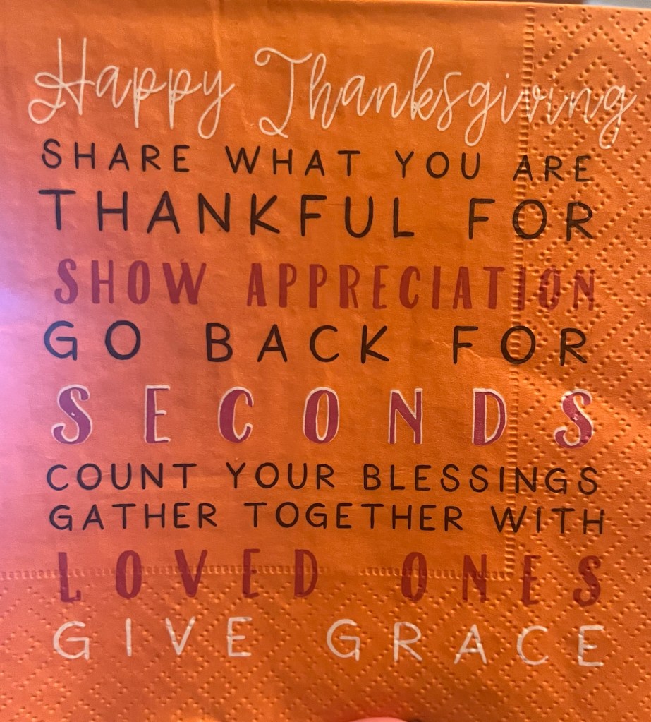 And, for those of you who just want to get through this day, I see you. This year may look different but I hope that you feel peace in what is happening in your life to get you to the other side. I pray for a friend spending her first Thanksgiving without her Dad. I pray for another friend who is a primary caregiver of a parent who is not the same as she was last year. I pray for all of you who are missing someone at your table or who are sitting at a table that looks different than what you have known.