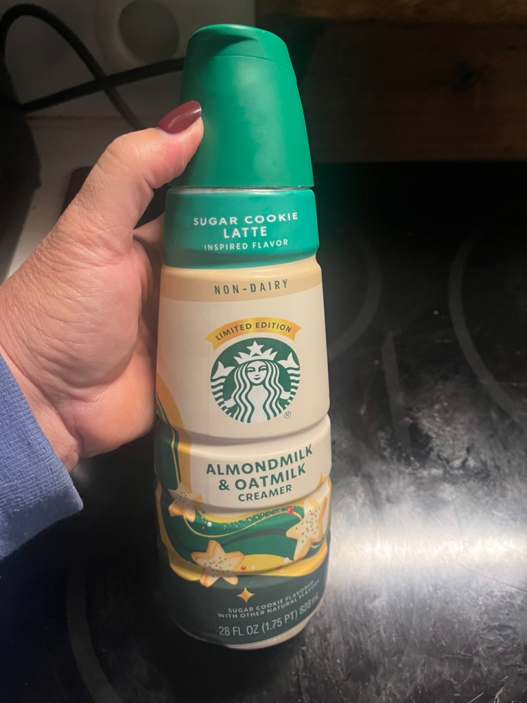 I went to Whole Foods for one thing that they didn’t end up having but I found this peppermint bark creamer.