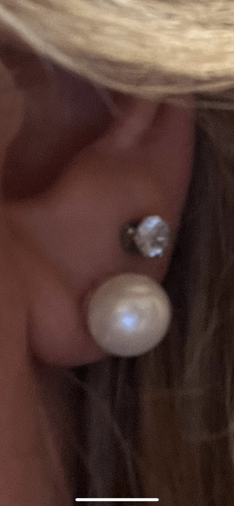 Did you catch my earrings post? Here is my double up for silver accessories. I did my silver cubic zirconia in the second hole and a big pearl stud in the first hole.
