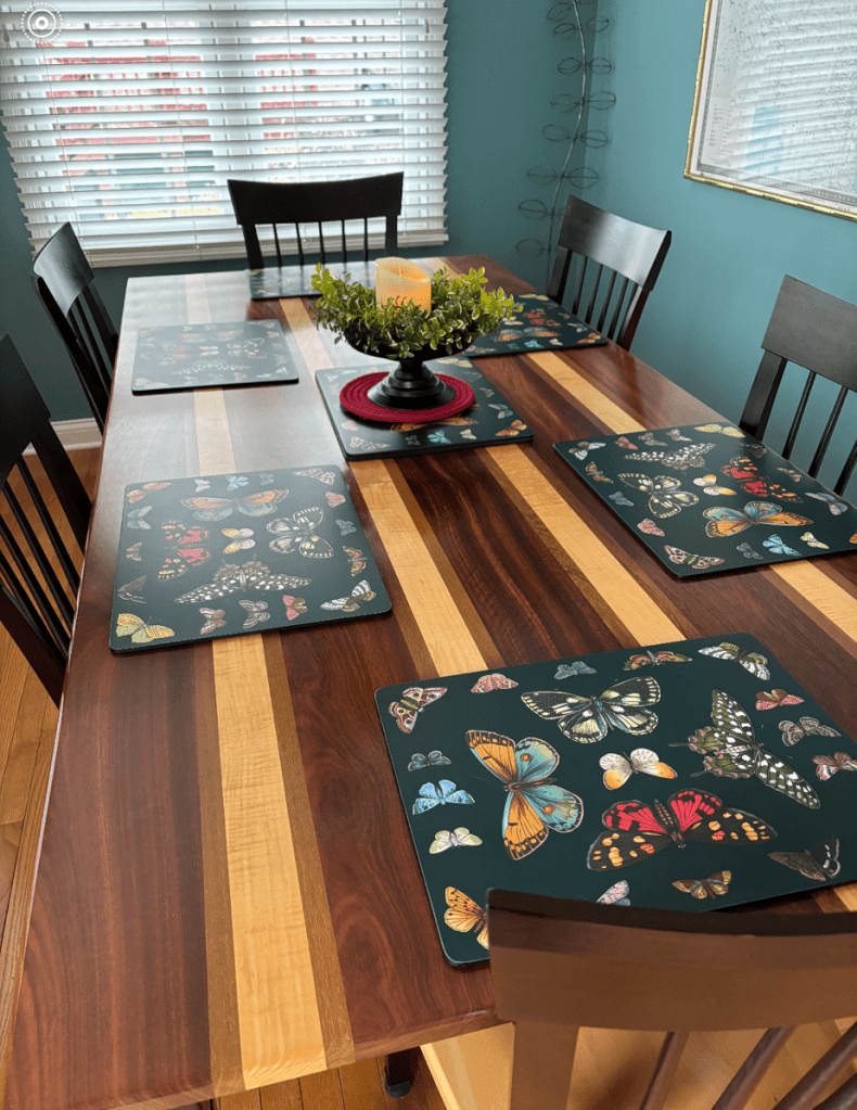 My mom’s gift from England was these beautiful placemats that have a cork back on them. My mom found them on Amazon and ordered even more. She has a really long table and it’s beautiful. Don’t they look so nice the way she arranged them here? Here they are on Amazon if you are interested.