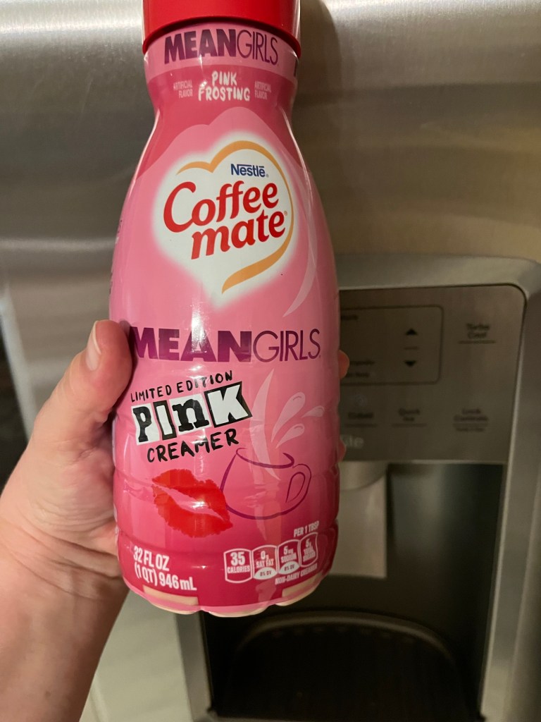 I made a total impulse purchase at the grocery this week – Mean Girls pink frosting flavored creamer. I love it!