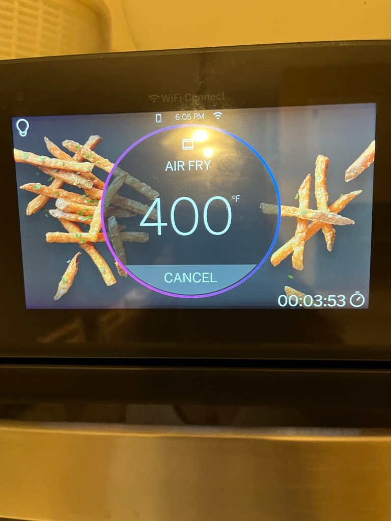 My oven is a favorite again. My air fryer (giant Caphalon sitting on the counter and taking up all kinds of space) is 2 years old (I think) and it started giving me an error message. Tom and I both Googled and tried to fix it and then I said,” you know what?” I’m gonna reclaim this counter space and use my oven. I am happy to report that the air fryer setting works like a charm.