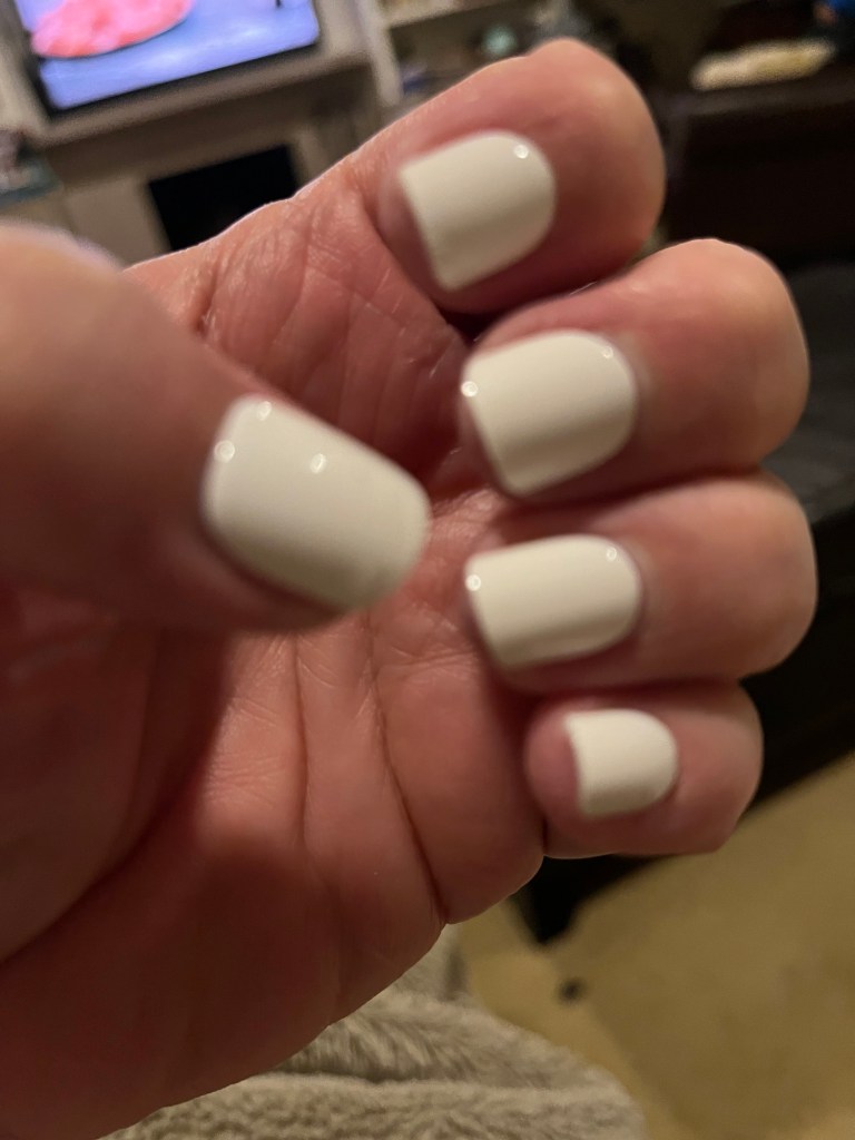I did a white mani (Impress press ons) for the beginning of February and then the next one I will do has heart designs. Yup, still impressed with Impress press ons! I am having the best luck when I remove the old set one day and then the next night I do a new set. I press them on, wait a bit, then I cut and file. I go to bed and do not put my hands in water until the next day.