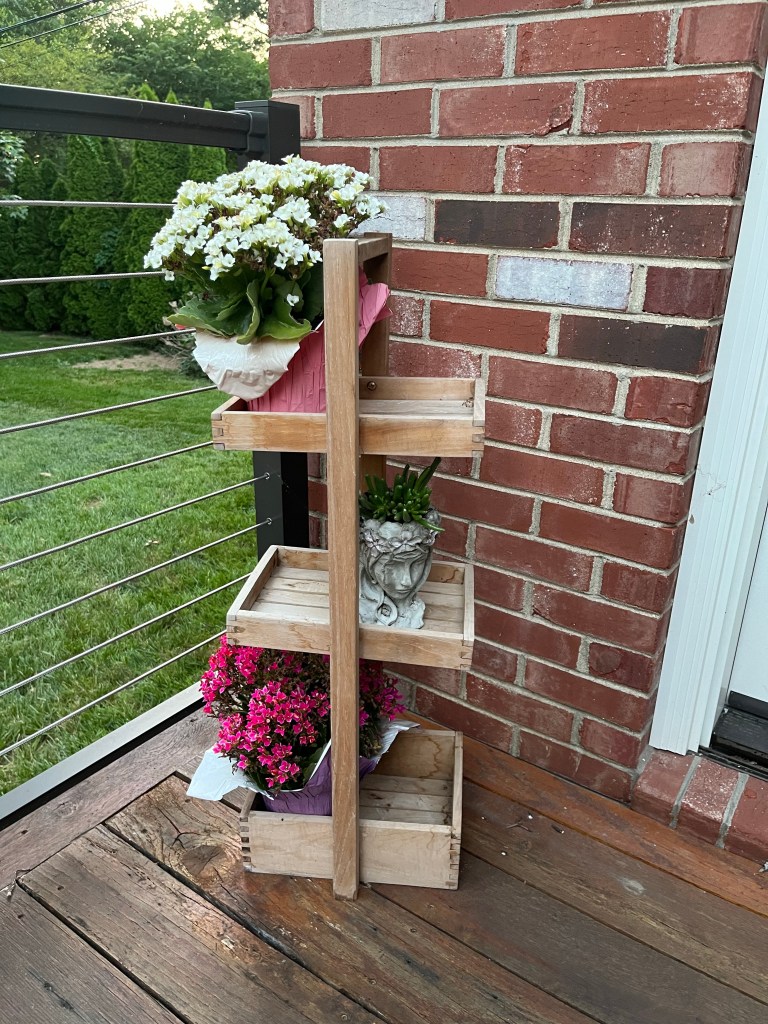 I’m really enjoying my new plant head I got last weekend and I think she looks great right here. One of my three flowers from Trader Joe’s already died, so this replaced it.