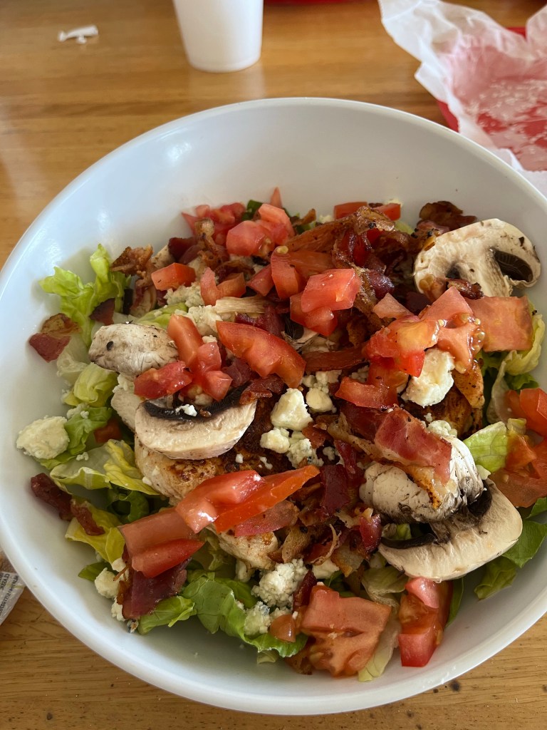 I got a make your own bowl and I was surprised by how much food really fit in this bowl. It was really good but I think I need to try different flavor combos and sauces. This is a good option if I don’t feel like cooking.
