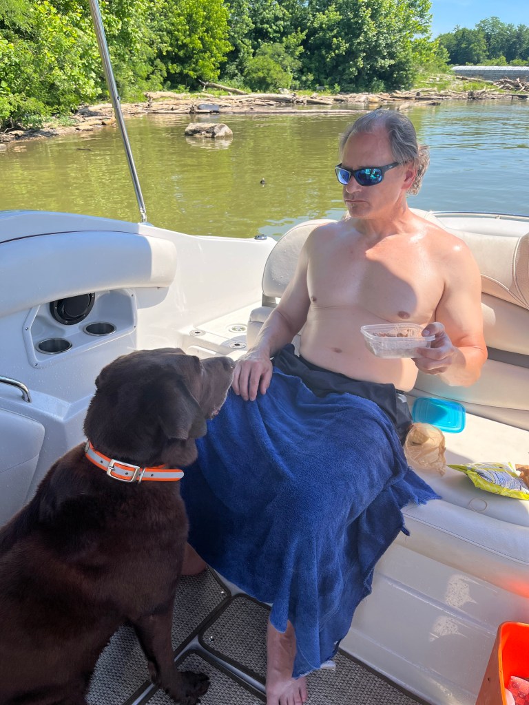 Facebook showed me a sweet memory. Tom got home from work and had an umbrella escort to the back door in the rain. And, look at my white minivan. I proudly drove him for 11 years. I loved that car. You know what? I think we were packed and loaded for vacation because the car topper is on and the beach toys are right by the garage.