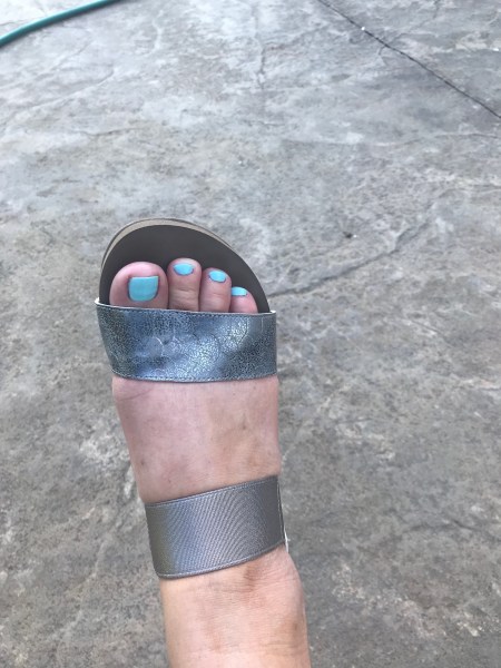 Next we have old Old Navy (haha) white linen shorts and a gingham blouse from Loft last year. I recently paid $5 to have an armpit hole repaired. The leather or faux leather feather earrings are from a local boutique Apricot Lane that I think is a chain. The Birks are this year’s Mother’s Day gift.