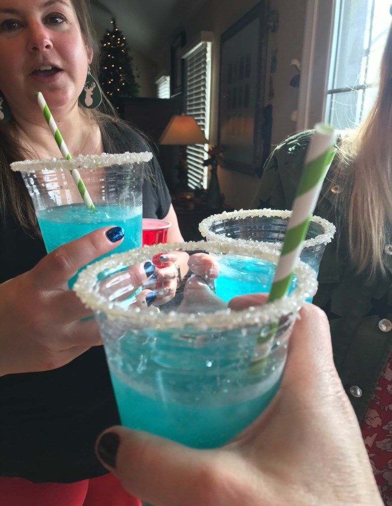 Then, I went home and Tom picked me up and we met our friends at the Mexican place we like. I ordered what I thought was a skinny strawberry marg and this arrived. It was way too sweet and I couldn’t drink it.