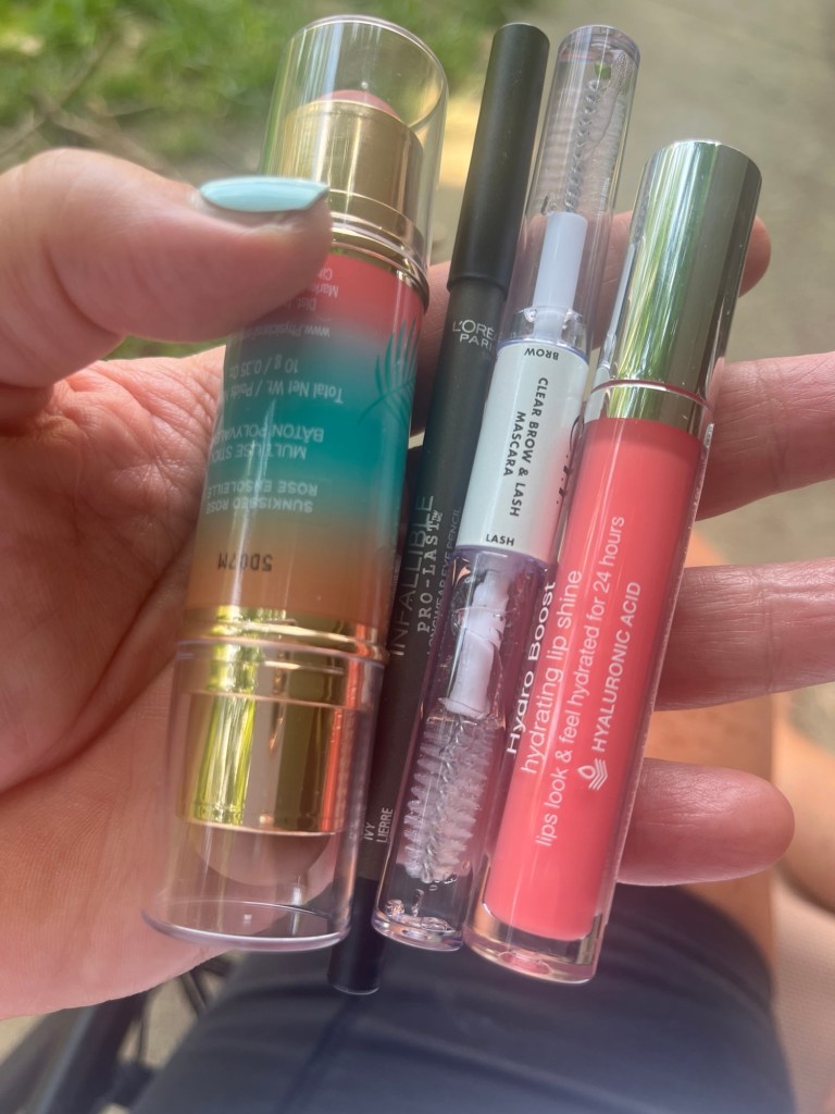 This Physician’s Formula Butter Glow & Go was my main mission but I added a new forest green eyeliner, clear brow gel, and Neutrogena hydroboost that Jenn had.