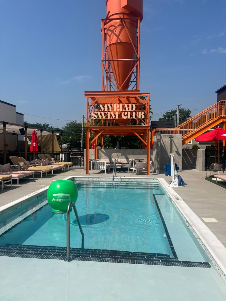 Wednesday was my fun day for the week! Every Wednesday in June is free for teachers at the Myriad Swim Club which is part of the Myriad Boutique Hotel here in Louisville. Yes, I am still a teacher in June. My official retirement date is July 1, Karen.
