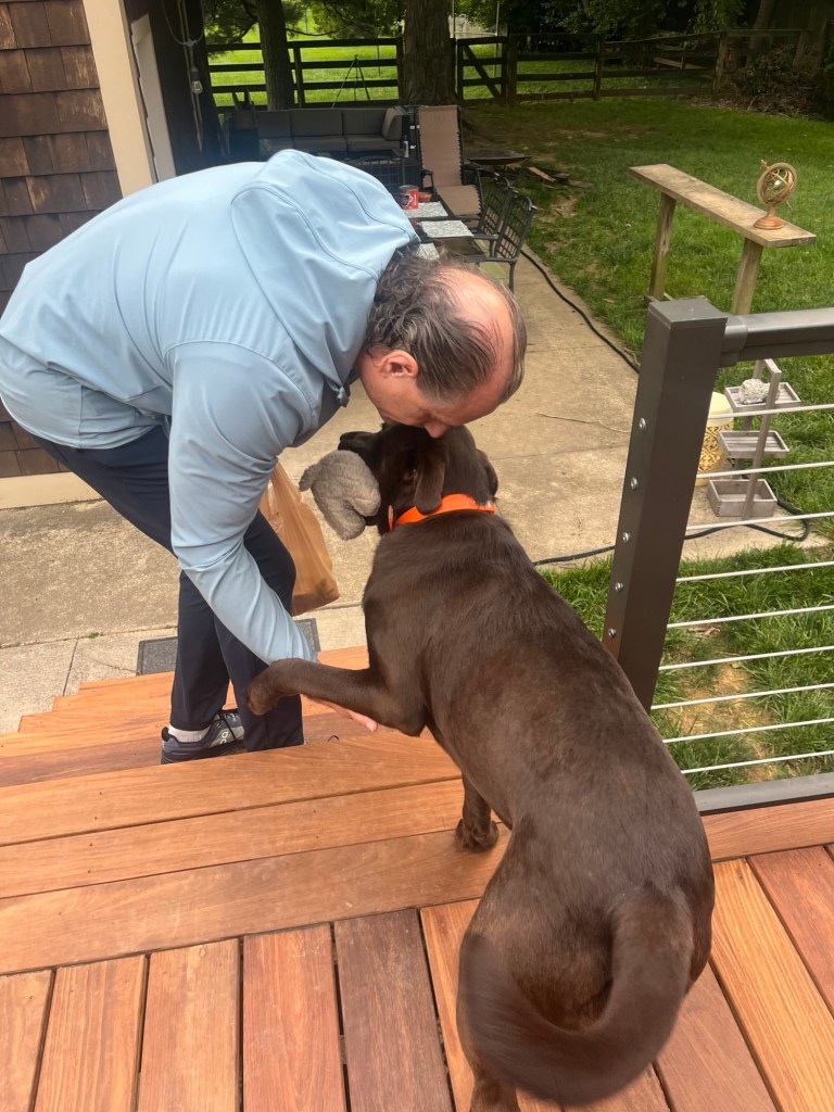 Eddie Otis wants me to hold his Kong while he licks his peanut butter. He is a very sharing dog. He wants to chew bones on your leg, and share his sticks that he chews. The sharing of a stick resulted in a scraping of mom’s leg (I’m mom).