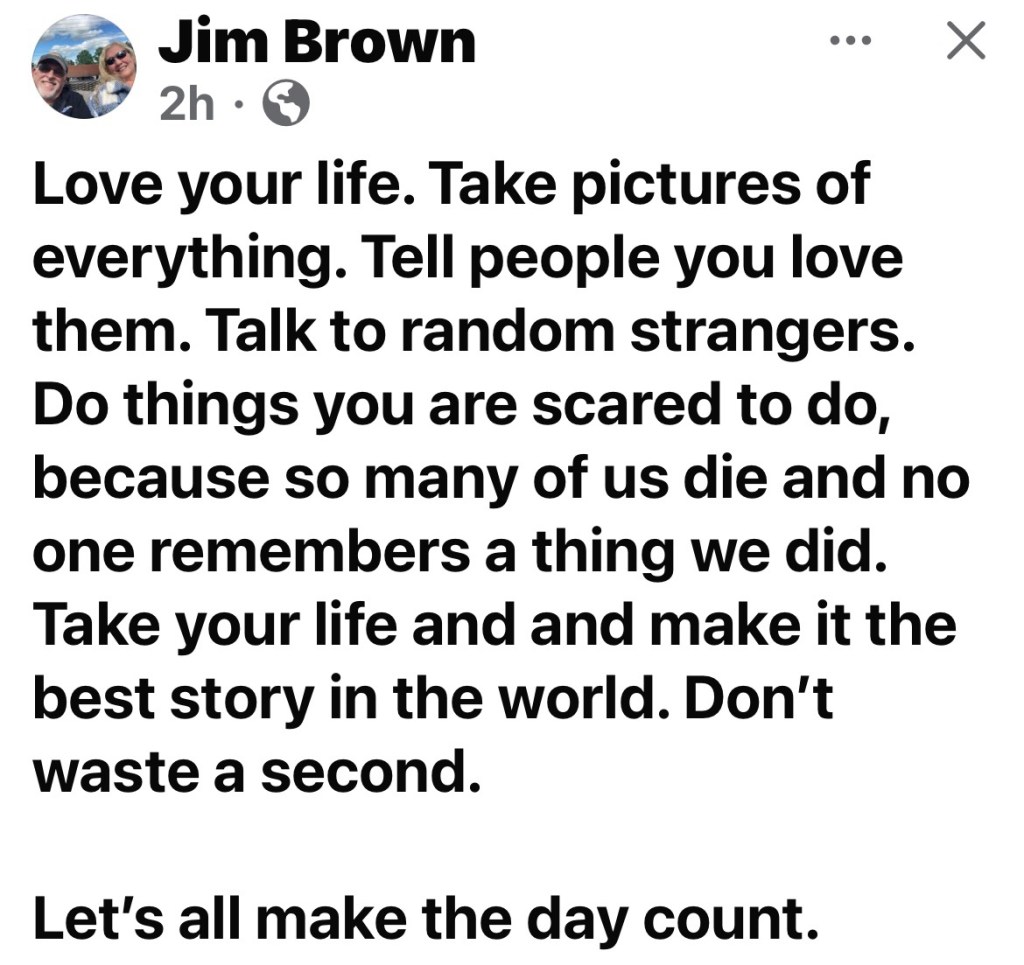 This is a guy I grew up with. He is the big brother of one of my closest friends and he starts each day with a Facebook message that is positive and inspiring.