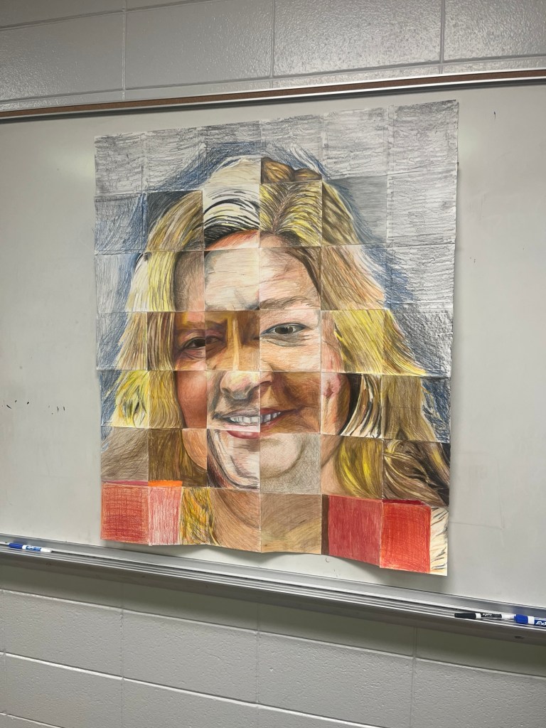 Well, the AP art students created a drawing like this for all 5 of the retiring teachers. Mine is obviously my favorite. I do need to talk to the kid who handled my chin(s). And, that better not be hair.