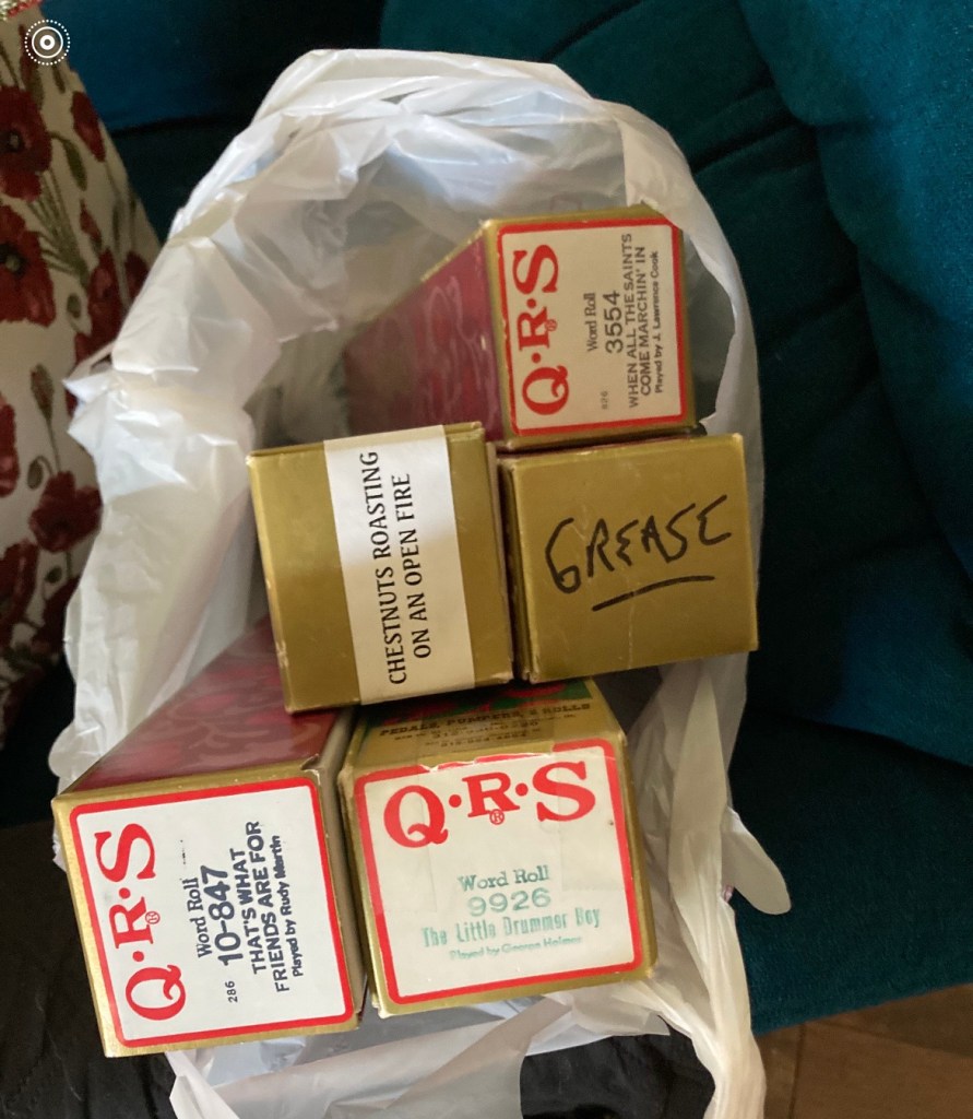 I let go of some possessions for other people to enjoy. A dear friend will have these piano rolls from our family’s player piano. One of them even has my Dad’s handwriting. I know I can go to her house and see it.