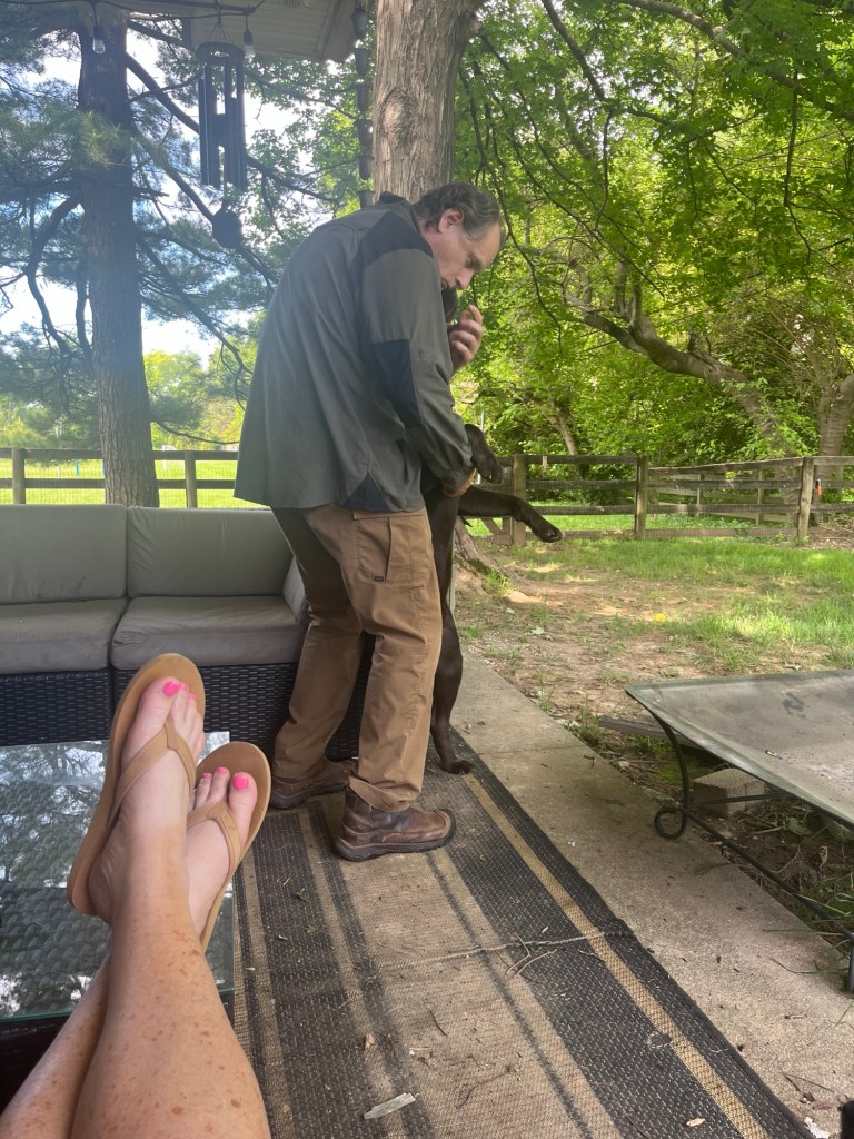 Cleaning the house! Finding the perfect time when I have the energy and EO is out of the house is next to impossible. I scurry to use Saturday mornings right now. Plus, this pup sheds more than our other labs.
