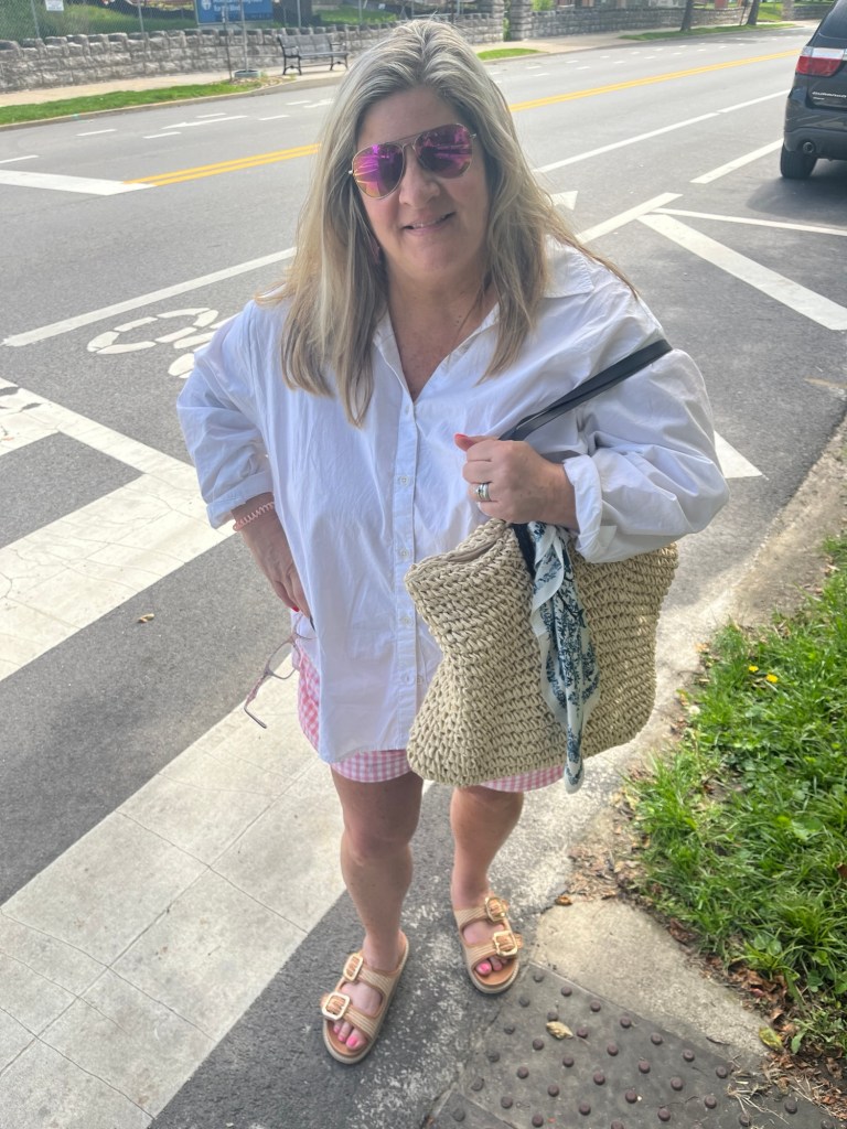 I couldn’t get this in time for Fashion Files yesterday, but I ordered some new pants from Amazon and my theory of spending around $30 to get a good quality on Amazon held true. I had white linen pants from Old Navy that were really old. I have been looking for some that aren’t too long and maybe had more of a modern wide leg silhouette without being too voluminous. Cue the ones I tried from Target and Old Navy this year – too wide. The only weird thing about these is they have built in white liner shorts just at the top of the pants. The line kind of looks like the pocket lining. Yes, they have pockets. The fabric is divine. It’s way softer than a scratchy linen. I really love them. I maybe should have gone down a size because they did stretch out a bit. I wore them to school all day and then changed shoes for my dinner out. I wrote lots of words but I wanted to share if anyone is around 5’4 like me and looking for the same.