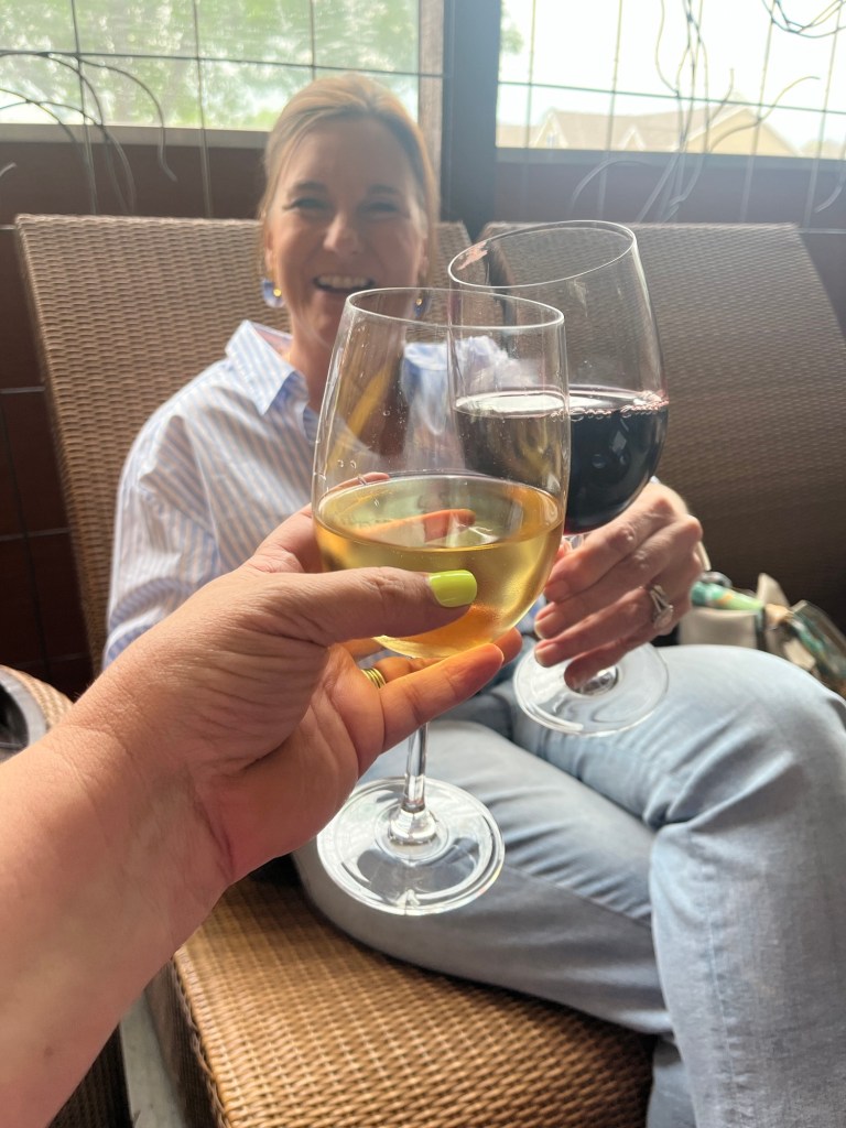 I almost always start my weekend recap on Thursday after school, but this time I really had a reason to do so. We were off on Friday; it’s a flex day that I worked over the summer. Too many teachers asked off for Oaks Day (the big race on the Friday before Derby) many years ago so they turned it into this. I spontaneously asked one of my Heathers to meet me for happy hour and it was so lovely! Look how cute she is!