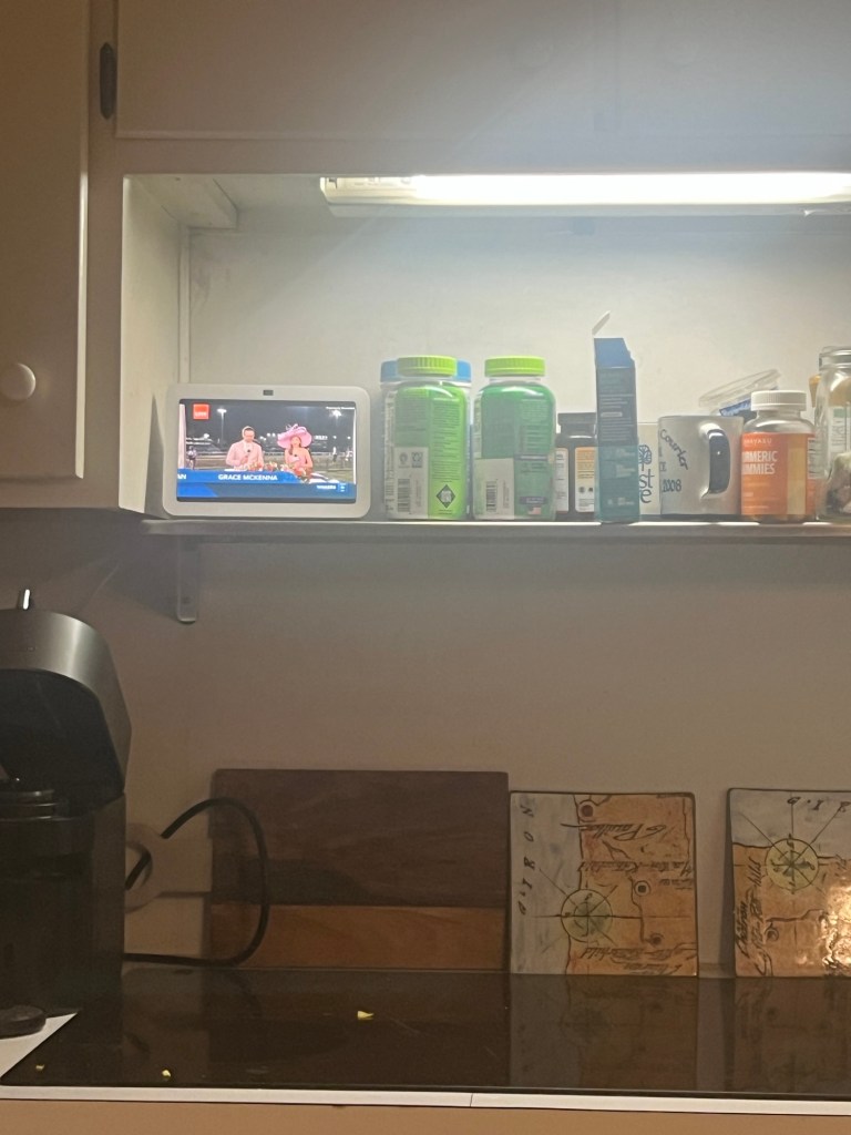 Sunday morning’s agenda was clean, order groceries, do laundry, organize stuff I brought home from my mom’s house, and just all the catch up things. Tom took EO on a long walk so I could get things done.