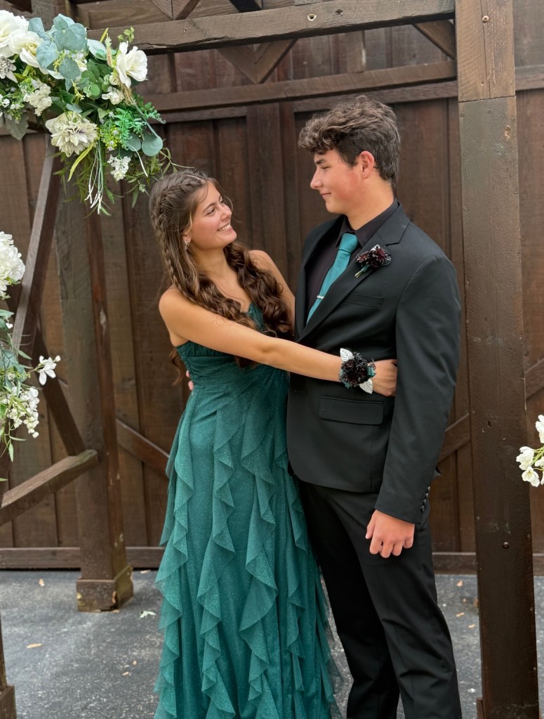 I received my darling twin niece and nephews’ prom photos. Mia even did her own hair! Apparently emerald green was the color of the year.